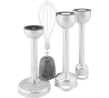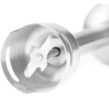 Der Gastroback Design Stabmixer Advanced Pro E ist ein leistungsstarkes Küchengerät mit 800 Watt Leistung und umfangreichem Zubehör, darunter ein Emulgieraufsatz, ein Spezialaufsatz für Kartoffelpüree, ein Schneebesen, ein Zerkleinerer und ein Mixbehälter. Der ergonomische Soft-Touch-Griff ermöglicht eine sichere und bequeme Anwendung, während die stufenlos regelbare Geschwindigkeit eine präzise Anpassung an verschiedene Zubereitungsarten erlaubt. Der Mixbehälter mit 800 ml Fassungsvermögen verfügt über einen Antirutsch-Deckel und eignet sich ideal für die Zubereitung von Saucen, Dips, Babynahrung, Shakes oder Smoothies. Der Zerkleinerer mit 500 ml Fassungsvermögen ist ebenfalls mit einem Antirutsch-Deckel ausgestattet und eignet sich zum Zerkleinern von Zutaten wie Parmesan oder Schokolade. Die Titanbeschichtung der 4-fach Edelstahlmesser sorgt für Langlebigkeit und einfache Reinigung.