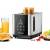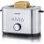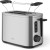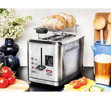 Der Zwei-Scheiben-Toaster punktet mit extrabreiten Toastschlitzen und ist auch gut für Bagels und Hamburger-Brötchen geeignet. Sein Design überzeugt mit einem soliden Edelstahlgehäuse, welches sich zeitlos in jede Küche fügt. Die Bedienung wird durch ein großes LCD-Display und Automatikprogramme unterstützt. Sie können aus sieben verschiedenen Anwendungen mit voreingestellten Toastzeiten wählen, welche beispielsweise die Zubereitung von Weißbrot, Vollkornbrot, glutenfreiem Brot, Waffeln, Bagels und Muffins erledigen. Ein Brötchenaufsatz gehört zur Ausstattung. Zusätzlich können Sie aus sieben Bräunungsstufen Ihren bevorzugten Röstgradauswählen. Ein weiteres Highlight ist die Speicherfunktion für vier Favoriten-Einstellungen, welche besonders für Mehrpersonenhaushalte praktisch ist. Dank Countdown-Timer auf dem Display haben Sie einen Überblick über die noch verbleibende Toastzeit. Die klassischen Aufwärm-, Auftau- und Stopfunktionen sind ebenfalls integriert und werden durch eine Abschaltautomatik und einen Energiesparmodus ergänzt. Mit dem Hi-Lift-Mechanismus können Sie Ihr Gepäck bequem entnehmen, ohne sich die Finger zu verbrennen. Die anschließende Reinigung wird durch das herausnehmbare Krümelfach vereinfacht.