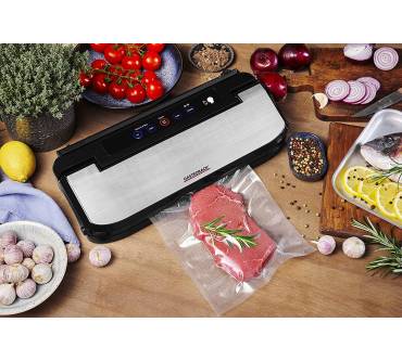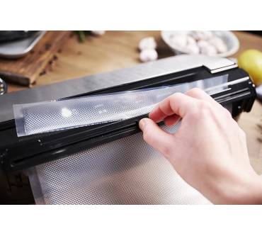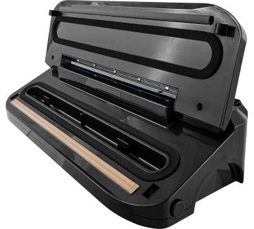 Außerdem trumpft das schlichte, in Edelstahl gekleidete Gadget mit einer Behälterfunktion auf, die sich für das Vakuumieren von flüssigen Speisen wie Suppen, Säften und Saucen, sowie für das Marinieren empfiehlt. Im Gegensatz zum konventionellen Einschweißen in Folien wird bei dieser Funktion ein im Lieferumfang enthaltener schmaler Schlauch in ein optional erhältliches Behältnis eingeführt, der die Luft im Innenraum entzieht. Nach dem Gebrauch lässt sich die Vakuumkammer schnell reinigen. Darüber hinaus verschwindet das 100 cm lange Netzkabel in einer sich auf der Unterseite des Produkts befindende Kabelaufwicklung. Ab ca. 70 Euro ist das Designstück zu haben und liegt damit preislich im Mittelfeld.