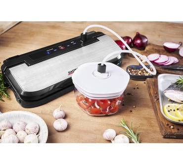 Vakuumierer liegen im Trend. Sie machen nicht nur Lebensmittel länger haltbar, sondern ermöglichen auch das Zubereiten von Gerichten ohne Flüssigkeitsverlust. Neben der Verwendung beim Sous-Vide-Garen lassen sich Speisen, denen in einer Vakuumierfolie überschüssige Luft entzogen wird, auch bestens marinieren für einen intensiven Geschmack. Mit dem Design Vakuumierer Basic von Gastroback wird der Markt um ein Produkt reicher, das viele Vorzüge hat. Das Gerät verspricht voll automatisiertes Vakuumieren und Verschweißen bei einem Unterdruck von -0,6 bis -0,8 bar und punktet mit einer integrierten Folien-Schneidevorrichtung. Vier Funktionen dürften Hobby- und Profi-Köchinnen und Köche gleichermaßen zufriedenstellen, denn der Küchenhelfer kann nicht nur trockene, sondern auch feuchte Lebensmittel mit den Funktionen Dry Food und Moist Food sicher in bis zu 30 cm breite Vakuumierbeutel und Rollen einschließen. Für weiche Lebensmittel eignet sich die Pulse-Funktion, die diese besonders schonend vakuumiert.