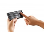 Die genauen Maße der Tastatur belaufen sich auf 151 mal 59 mal 12,5 Millimeter, das Gewicht beträgt lediglich zarte 100 Gramm. Das Eingabegerät passt daher nicht nur locker in eine Notebooktasche oder lässt sich sogar im Jackett unterbringen. Die knuffigen Maße tragen auch dazu bei, dass sie leicht mit einer Hand umfasst und bedient werden kann – wenn auch die Benutzung der Tasten natürlich ein gewisses motorisches Feingefühl voraussetzt. Nicht ungewöhnlich ist es, dass Kompakttastaturen mit einem Touchpad ausgestattet sind, da sie oft zur Steuerung einer Heimkino-Umgebung vom Sofa aus eingesetzt werden. Das Touchpad dient in diesem Fall als Ersatz zur Navigation des Mauspfeils. Über acht Schnell-Tasten können außerdem einem Mediaplayer Steuerungsbefehle erteilt werden. Der Hersteller hat die Tastatur darüber hinaus aber auch gleichzeitig als zentrales Steuerungsgerät für Präsentationen konzipiert. Dafür wurde extra ein Laserpointer integriert, der die Aufmerksamkeit des Publikums auf die richtigen Stellen der Präsentation lenken soll. Außerdem erlaubt es die Tastatur, unmittelbar während der Präsentation die Folien um Inhalte zu ergänzen – ein Komfort also, den ein handelsüblicher Presenter in diesem Umfang nicht bieten kann. Über die Bluetooth-Schnittstelle lässt sich die Tastatur selbstverständlich auch mit vielen Smarthphones sowie Tablet-PCs kombinieren. Dies ist insbesondere für Vielschreiber von Vorteil, die sich mit der virtuellen Tastatur der jeweiligen Geräte eher schwer tun, die sich wiederum in der Tat für die Eingabe längerer Text kaum nur in den seltensten Fällen wirklich eignet.