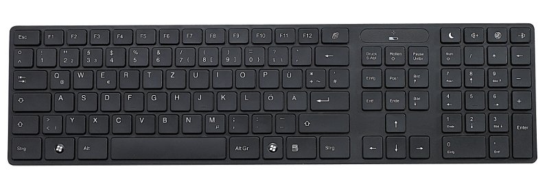 Konkret bedeutet dies, dass die iDT-110 Air mit einer besonders flachen Bauform des Gehäuses aufwartet, die sich mittlerweile ebenfalls als Standard bei den meisten neueren Tastaturen etabliert hat – kommen doch nicht wenige Tastaturen in Kombination mit Notebooks zum Einsatz, die aus Gründen der Harmonie geradezu nach einem flachen Eingabegerät verlangen. In die Nähe eines Notebook-Keyboards kommen auch die Tasten der iDT-110 Air, denn sie fallen ebenfalls flacher aus als bei herkömmlichen Tastaturen. Ob sie dadurch aber auch, wie es in der Produktankündigung heißt, angenehm und fingerschonend zu tippen sind, werden erst Tests oder User-Erfahrungsberichte offenlegen.