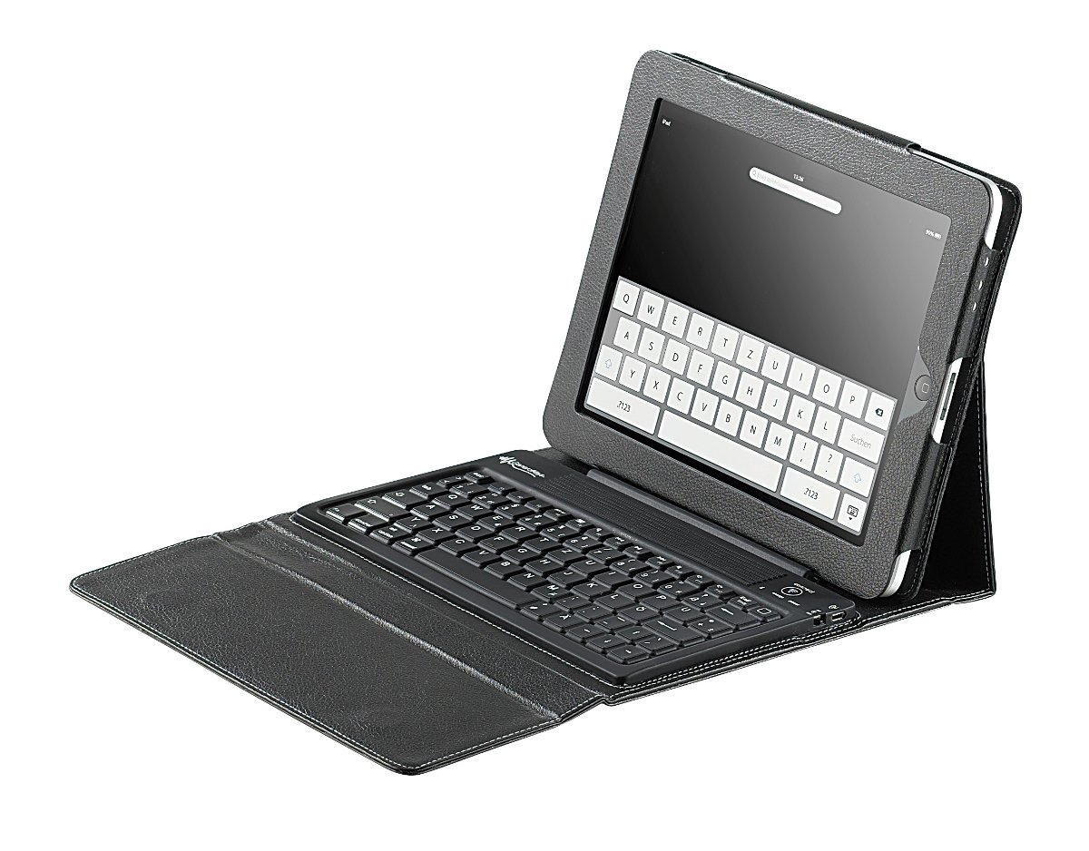 Die Tasche besteht ferner aus einem Lederimitat, sodass sich der Preis für das All-in-One-Set in einem vernünftigen Rahmen bewegt. Über Amazon kann die iPad-Tasche mit integrierter Bluetooth-Tastatur für 75 Euro bestellt werden, zurzeit bietet sie aber auch der Internetversender Pearl zu einem deutlich niedrigeren Preis von 49,90 Euro an.