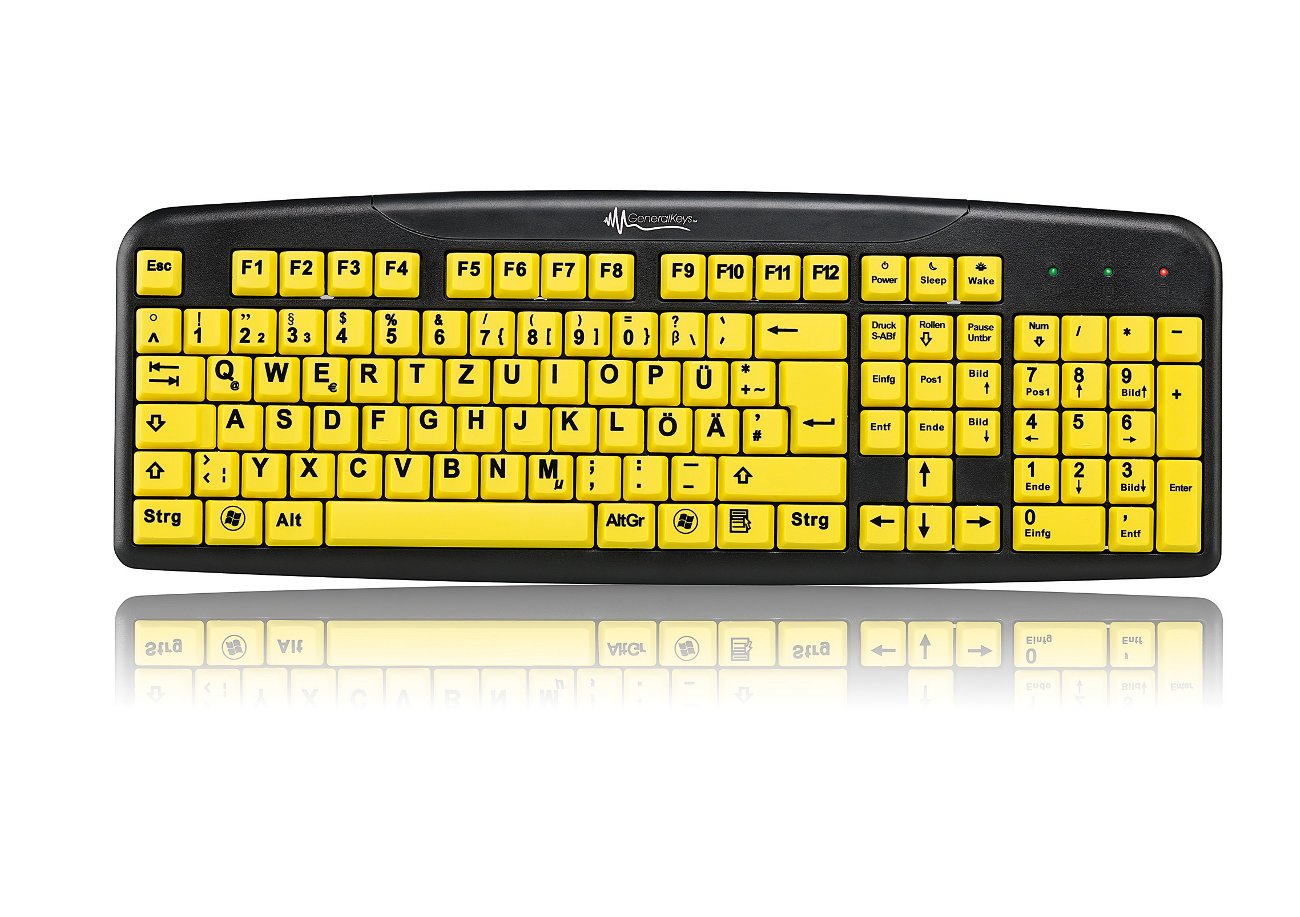 Eine Tastatur der besonderen Art hat General Keys auf den Markt gebracht. Die unter der Produktnummer PX-2727 vertriebene Tastatur hat außergewöhnlich große und auch großzügig beschriftete Tasten und soll daher hauptsächlich für Menschen mit schwachem Augenlicht hilfreich sein soll.