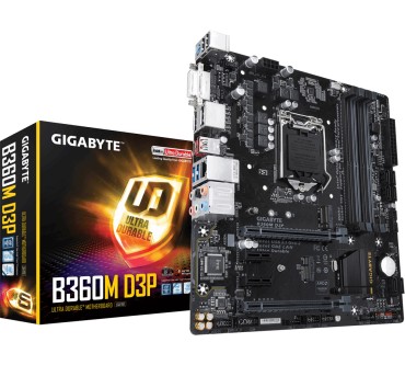 Das Board im kompakten Micro-ATX-Formfaktor nimmt aktuelle Intel-CPUs der Coffee-Lake-Generation auf. Große Kühlkörper und Extras wie eine LED-Beleuchtung fehlen der Platine, aber dafür bietet es eine gute Auswahl an Anschlüssen. Das Highlight: Zwei DisplayPort-Anschlüsse ermöglichen den Anschluss zweier hochauflösender 4K-Monitore ohne den Einbau einer Grafikkarte. Somit ist das B360M D3P sehr gut für moderne Büro-Arbeitsplätze geeignet. Zwei der USB-Anschlüsse auf der Rückseite übertragen Daten mit bis zu 10 GBit/s, was insbesondere für externe SSD-Festplatten von Vorteil sein kann. Der Preis ist allerdings etwas hoch.