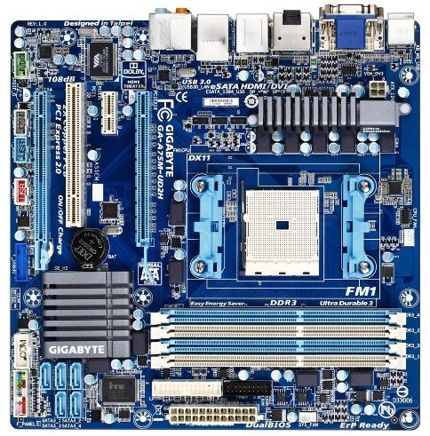 Die Mainboardhersteller beeilen sich, die neuen AMD-APUs mit entsprechendem Hauptplatinen zu bedienen. So auch Gigabyte mit seinem A75M-Board, das auch von den Anschaffungskosten, die deutlich unter 100 Euro (amazon) liegen, ausgezeichnet zum A6-3650er passen würde. Der neue FM1-Sockel unterstützt aber auch AMDs A8- und E2-Serie.