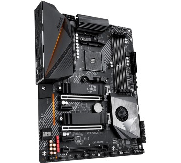 Wenn Sie ein PC-System auf Basis von AMDs Ryzen-3000-Serie planen, führt am X570-Chipsatz kaum ein Weg vorbei. Mit dem Chipsatz einher gehen moderne Features wie PCIe 4.0 und entsprechend flotte M.2-Steckplätze für SSDs einher. Wie die meisten anderen X570-Boards setzt Gigabyte beim Aorus Pro auch auf einen aktiven Chipsatzkühler. Dieser ist leider auch bei geschlossenen Gehäusen noch leicht hörbar, was das Board für den Bau eines echten Silent-Systems disqualifiziert. Das Layout wirkt auf den ersten Blick durchdacht, offenbart mit dem zu nah am GPU-Steckplatz platzierten M.2-Slot aber doch einen kleinen Schnitzer. Die verbauten Komponenten sind hochwertig und die Materialqualität kann sich sehen lassen. Die RGB-Beleuchtung ist frei konfigurierbar, fällt aber eher dezent aus. Lichtspielfreunde finden aber freie Header (auch addressierbar) auf dem Board.