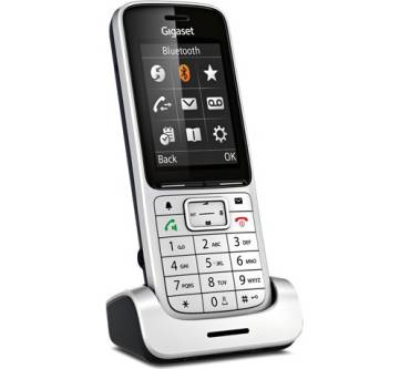 „Das SL450HX gehört zu Gigasets Luxusklasse. Das merkt man auch: Der Rahmen besteht teils aus Aluminium, die Ladeschale aus Metall. Das Telefon ähnelt dem CL660HX, ist aber etwas klein geraten, und die Sprachqualität ist ein wenig schlechter.“