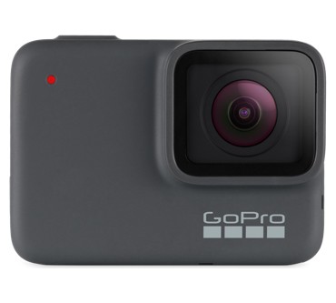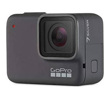 Die GoPro Hero7 Silver ist mit 330 Euro bereits im oberen Action-Cam-Preisbereich angesiedelt. Damit nimmt sie im GoPro-Lineup den Platz zwischen Hero7 Black (430 Euro) und Hero7 White (220 Euro) ein. Sie bietet zahlreiche nützliche Funktionen wie eine Sprachsteuerung, eine elektronische Bildstabilisierung und GPS. Ihr gummiertes Gehäuse ist bis zu 10 Meter wasserdicht. Wer nicht vorhat, tiefer abzutauchen, kann sich also ein weiteres Unterwassergehäuse sparen. Etwas ärgerlich und ein eindeutiges Manko ist, dass GoPro den Akku fest verbaut hat. Bei einem Tag auf der Piste ist davon auszugehen, dass die Kamera zwischendurch aufgeladen werden muss, beispielsweise mit einer Powerbank.