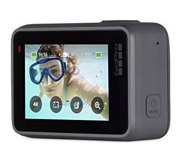 „Sprachgesteuert. Lässt sich GoPro-typisch mit Sprachbefehlen freihändig bedienen. Sie reagiert insgesamt aber langsam. Guter Monitor mit Touch screen. Die GoPro-App ist zwingend zur Inbetriebnahme erforderlich und sendet unnötig Daten an Dritte.“