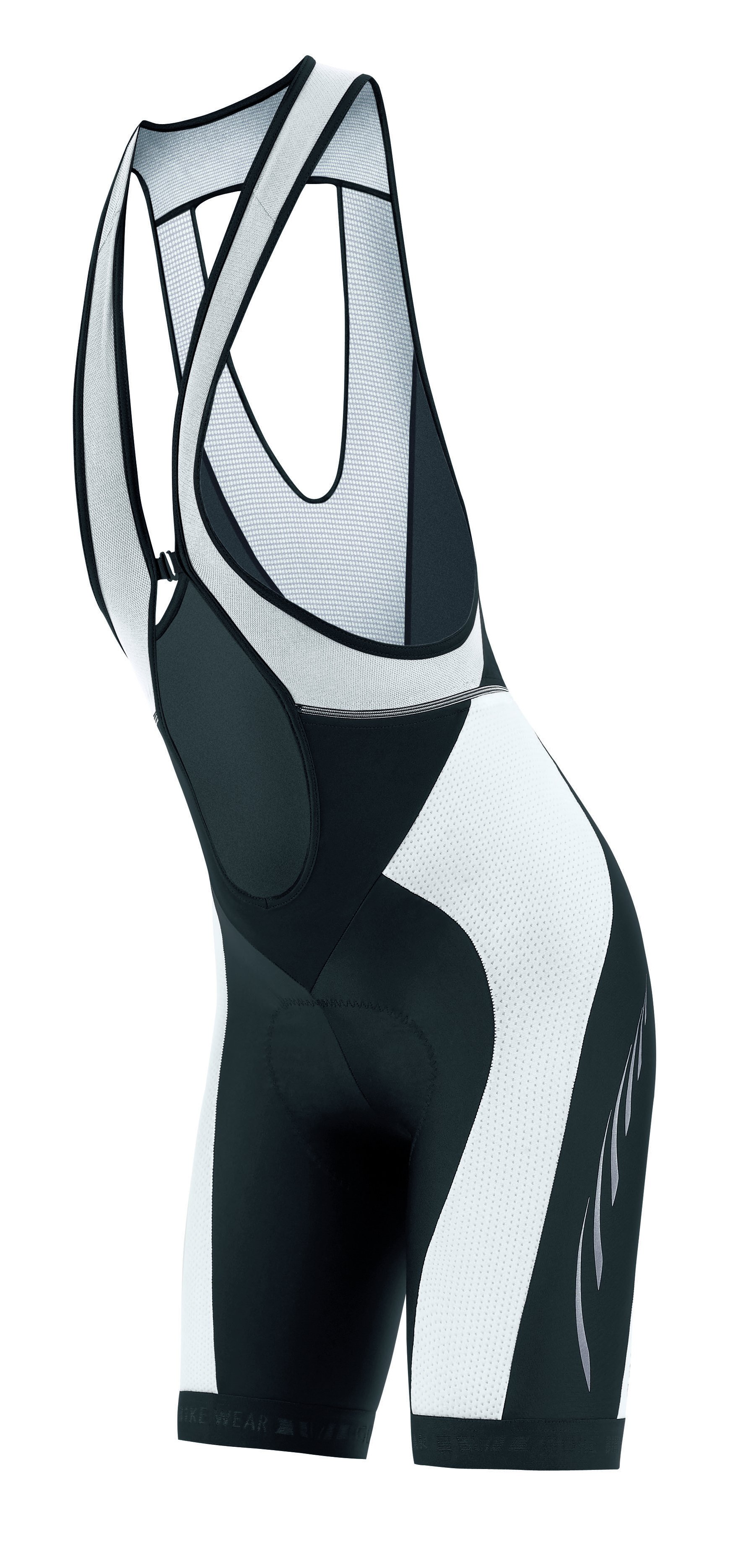 Gore Bike Wear lässt es an funktionellem Material natürlich nicht mangeln. Es ist auf die Anatomie des Frauenkörpers und die Anforderungen beim Roadbiken abgestimmt. Die zu einem X geformten Träger sind aus hautfreundlichem Meshmaterial hergestellt. Sie verlaufen über dem Brustbein, um ein Zwicken an der Brust zu verhindern. Im Oberschenkelbereich kommt eine Kompressionswirkung zum tragen, die für bessere Blutzirkulation und verkürzte Regenerationsszeiten der Muskeln sorgen soll. Der elastische Beinabschluss verhindert ein Verrutschen während des Fahrens.