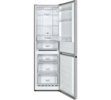 Die NRK619CAXL4 von Gorenje punktet unter anderem mit ihren Frischefächern: In der sogenannten „Crisp-Zone“ bringen Sie ordentliche Mengen an Salat und Obst unter, wobei Sie die Feuchtigkeit beliebig regeln können. Eine zweite Zone nutzen Sie je nach Bedarf ebenfalls als Obst-/Gemüsefach oder lagern darin Fleisch und Wurst. Die Luft zirkuliert gleichmäßig im Innenraum und verteilt die Temperatur bis in die letzte Ecke. Abtauen müssen Sie überhaupt nicht mehr, Eisbildung wird verhindert und die ionisierte Luft sorgt laut Hersteller im Kühlteil für ein gutes Mikroklima. Ihren frischen Einkauf bringen Sie mit der Schnellfunktion nährstoffschonend auf Frosttemperatur, eine derartige Funktion für das Kühlen gibt es aber nicht. Insgesamt ist das Gefriervermögen mit 6 kg pro Tag eher bescheiden, auch die Lagerzeit im Störungsfall könnte länger sein.