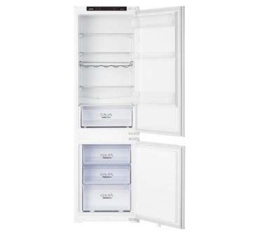 Mit einem Kühlraumvolumen von 183 Litern und 63 Litern Gefriervermögen passen in die Gorenje-Kühl-Gefrierkombiation NRKI418EP1 Lebensmittel für zwei bis drei Personen hinein. Zu den Pluspunkten zählt die Abtau-Automatik in beiden Bereichen. Das erspart Ihnen nicht nur das manuelle Abtauen, Sie dürfen auch mit einem stets trockenem Innenraum rechnen. Für das Kühlteil lässt sich eine Superkühl-Funktion aktivieren. Sie senkt die Temperatur kurzfristig ab, sodass neu hinzugefügte Lebensmittel den Inhalt nicht antauen und schneller die optimale Lagertemperatur erreichen. Das kann die Waren länger frisch halten. Ein spezielles Fach für eine längere Haltbarkeit frischer Speisen fehlt leider. Auch benötigt das Gefrierteil vergleichsweise lange, um die Lebensmittel auf Frostniveau zu bringen: Das Gefriervermögen von drei Kilogramm binnen 24 Stunden ist vergleichsweise gering. Dazu kommt eine nicht sehr hohe Energieeffizienz. Im Jahr ist mit 217 kWh zu rechnen, was Effizienzklasse E entspricht. Das geht auch sparsamer, wie es beispielsweise die Kühlkombi Gorenje NRC620BSXL4 zeigt. Dieses Modell ist dafür günstiger: Im Schnitt werden 500 fällig.
