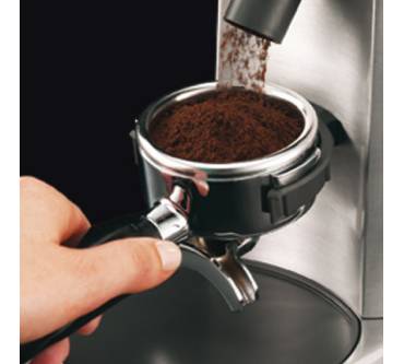 Zum Lieferumfang der Graef CM 80 gehören zwei Adapter für Siebträger, weswegen sich die Kaffeemühle optimal für Besitzer von hochwertigen Espressomaschinen eignet – einfacher kann die Befüllung des Siebträgers kaum erfolgen. Allerdings sollte der Wunsch nach einem Espresso (oder Kaffee) nicht allzu dringend sein, denn die CM 80 lässt sich bei irer Arbeit ziemlich viel Zeit.