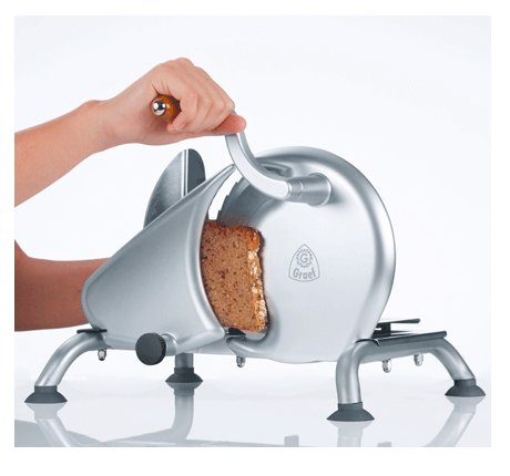 Viele der lediglich von Hand betriebenen Allesschneider verdienen diese Bezeichnung nicht, weil ihre Domäne streng genommen das Schneiden von Brot ist. Doch diese Einschränkung ist für den H 9 des renommierten Herstellers Graef von keinerlei Bedeutung. Das scharfe Messer gleitet auch nahezu problemlos durch andere Lebensmittel.