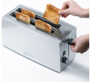 Der renommierte Hersteller von Küchengeräten fast jeder Art Graef hat zum Frühjahr 2012 einen neuen Toaster in sein Programm aufgenommen, der dank seiner Größe gleich bis zu vier Toastscheiben oder XL-Toasts aufnehmen kann. Darüber hinaus ist der TO 100 mit etlichen Komfortfunktionen ausgestattet sowie in ein edles Gehäuse aus Metall verpackt. Er schlägt allerdings auch mit rund 130 Eur (Amazon) zu Buche und richtet sich damit tendenziell an Kunden, die bereit sind, für Küchengeräte etwas mehr Geld als der Durchschnitt auszugeben.