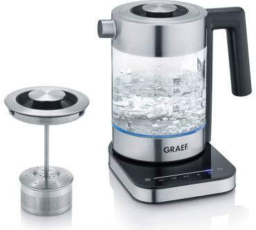 Mit diesem Wasserkocher von Graef sind Sie sowohl als Kaffee- als auch Teeliebhaber gut versorgt. Die Temperatur wählen Sie individuell am Touch-Display der Basisstation. Diese ist 360-Grad drehbar, sodass Sie den Behälter aus allen Positionen gut fassen. Sobald die gewünschten Grade erreicht sind, schaltet das Gerät ab. Für Filterkaffee gibt es ein eigene Einstellung, die das Wasser auf die optimale Temperatur bringt. Teeliebhaber können mit dem zweiten Deckel ein absenkbares Sieb nutzen. Warmhaltemöglichkeit und Restwärmeanzeige runden das positive Bild ab. Mit knapp 100 Euro gehört das Modell zwar nicht zu den Schnäppchen, bietet aber viele Möglichkeiten. Auch das Design mit LED-Beleuchtung ist gelungen, sodass der Graef eine Empfehlung wert ist.