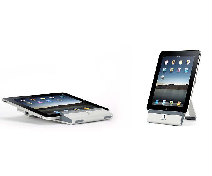 Griffin, bekannt für seine schönen und zugleich funktionalen Accessoires für diverse Apple-Produkte, bietet mit dem A-Frame ab sofort auch wie zu erwarten einen praktischen Ständer für das neue iPad an. Das recht simpel konstruierte Teil hält den Tablet-PC in einer aufrechten Position, damit der User auf diesem umso besser und komfortabler zum Beispiel Bilder oder Videos betrachten beziehungsweise eBooks lesen kann. Vorausgesetzt, dass entsprechend sachte vorgegangen und die virtuelle Tastatur des iPad nicht mit zu viel Schwung bedient wird, ist natürlich auch generell das Arbeiten an einem auf dem A-Frame angebrachten iPad möglich.