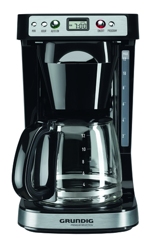 Doch die Grundig startet nicht nur den Brühvorgang selbständig zu einem einmal festgelegten Zeitpunkt. Sie schaltet sich auch von alleine aus, sodass der Benutzer keinen Gedanken an die Maschine verschwenden muss und sich stattdessen sorgenfrei anderen Dingen widmen kann. Bis dahin hält die Maschine den Kaffee übrigens zwei Stunden lang warm. Beim Brühvorgang selbst wiederum setzt die Grundig 93 Grad heißes Wasser ein, eine Temperatur, die sich als nahezu ideal für einen nicht nur sehr heißen, sondern auch wohlschmeckenden Kaffee herausgestellt hat. Die Bedienung ist kinderleicht, da die Möglichkeit, zusätzliche Einstellungen vorzunehmen, nicht gegeben ist. Dank einer Tropf-Stopp-Automatik sollte es ferner möglich sein, die Glaskanne schon während des Brühvorgangs zu entnehmen, oder dass eine Sauerei passiert. Wer den Kaffee also lieber etwas stärker haben möchte, kann sich mit diesem kleinen Tricks behelfen. Für die Reinigung kann der Filterkorb komplett abgenommen werden, der Wasserstand wiederum lässt sich über eine transparente Anzeige leicht ablesen. Die maximale Füllmenge des Wassertanks beträgt 1,8 Liter, die Grundig ist damit für maximale 12 Tassen gut und richtet sich daher an größere Haushalte beziehungsweise bietet sich als Filter-Kaffeemaschine fürs Büro an.Die neue Frühstückserie von Grundig heißt nicht ohne Grund „Black Line“, denn alle Geräte, angefangen vom Toaster über den Wasserkocher bis hin zur Kaffeemaschine kennzeichnet ein tiefschwarzer, leicht glänzender Kunststoff, dessen hochwertige und edle Anmutung von den sparsam angebrachten Edelstahlverblendungen noch zusätzlich unterstrichen wird. In puncto Gehäusedesign wiederum folgt die Grundig der konventionellen Bauform für Maschinen ihres Typs. Ursprünglich vom Hersteller mit fast 70 EUR veranschlagt, ist die schicke Filter-Kaffeemaschine jedoch jetzt schon für einiges weniger zu haben. Amazon etwa führt sie momentan für rund 55 EUR im Programm.