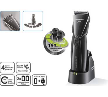 Konkret bedeutet das: Mit dem Grundig können die Haar bei Bedarf fast drei Stunden lang geschnitten werden. Für die 160 Minuten Laufzeit wiederum werden im Vergleich dazu nur drei Stunden Ladezeit benötigt, auch das ein angenehmer Nebeneffekt der Akku-Technik. NiMH-Akkus genehmigen sich im Vergleich dazu nämlich Ladezeiten im zweistelligen Bereich. Sollte wider Erwarten der Akku trotzdem schon leer sein, bevor der letzte Schliff am Haar erfolgt ist, muss niemand mit einer unfertigen Frisur aufstehen und warten. Denn der Haarschneider kann auch über sein Netzkabel mit Strom versorgt werden.