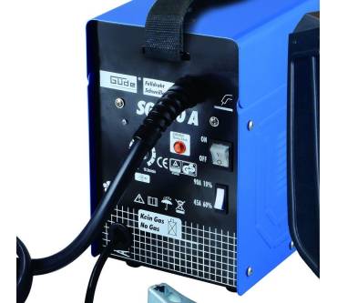 Der geringe Durchmesser des Fülldrahtes und der maximale Schweißstrom von 90 Ampere geben einen Hinweis darauf, dass von dem SG120A keine Schweißwunder erwartet werden dürfen (Ratgeber: Wichtige Parameter von Schweißgeräten). Der Hersteller gibt die maximal schweißbare Materialstärke mit 5 Millimeter an. Nutzerkommentaren ist zu entnehmen, dass gute Schweißnähte allerdings eher bei noch geringeren Materialstärken erzielt werden.Die Einschaltdauer bestimmt, wie lange ununterbrochen geschweißt werden kann. Sie liegt bei diesem Gerät im unteren Mittelfeld. So benötigt das GÜDE bei einem Schweißstrom von 45 Ampere nach sechs Minuten und bei 90 Ampere nach einer Minute eine Pause. Wird das Gerät zu heiß, schaltet es sich mittels Zwangskühlung selbständig ab. Die Leerlaufspannung von 31 Volt könnte vermuten lassen, dass die Zündung des Lichtbogens beschwerlich ist. Hinweise von Nutzern in den überwiegend positiven Kritiken des Gerätes finden sich dafür allerdings nicht. Mit dem Stromnetz verbunden wird das SG120A über einen gewöhnlichen 230-Volt-Anschluss.