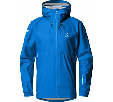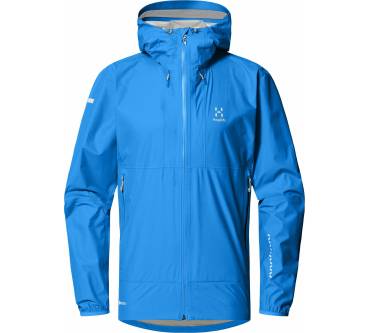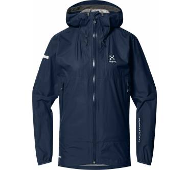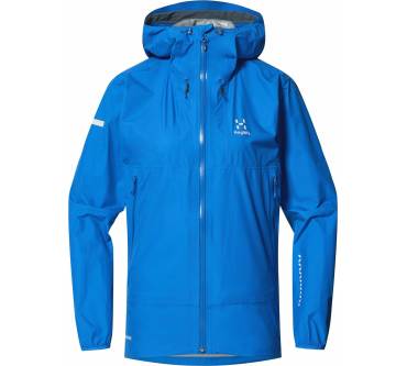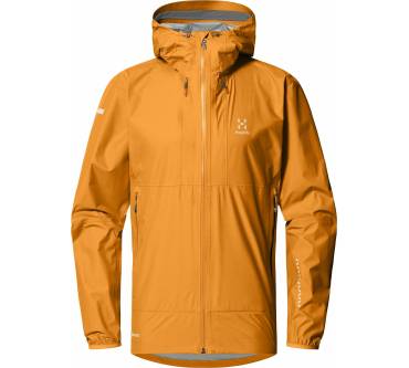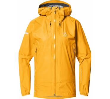 Die mit Gore-Tex ausgerüstete Jacke von Haglöfs bietet Wetterschutz für Berg- und Wanderabenteuer, und davon nicht zu knapp: Sie ist wasserdicht, ihre Reißverschlüsse immerhin wasserabweisend und die Kapuze – dreifach verstellbar – kommt mit verstärktem Schirm. Durch den Verzicht auf Nähte an diversen Stellen kann zusätzlich weniger Wasser an prekären Stellen eindringen. Für den Komfort bringt das Modell vorgeformte Ärmel mit, der Saum ist mit einer Hand verstellbar und elastische Bündchen sorgen für Beweglichkeit. Für eine Hardshell mit so viel Funktion ist sie mit 230 Gramm erstaunlich leicht und gut verstaubar. Die Jacke gibt's für Damen und Herren, sie punktet zudem mit einigen nachhaltigen Details, nachgewiesen durch eine bluesign-Zertifizierung.