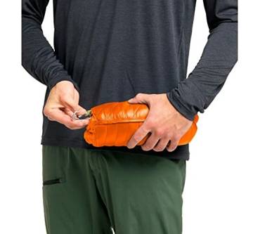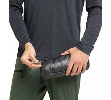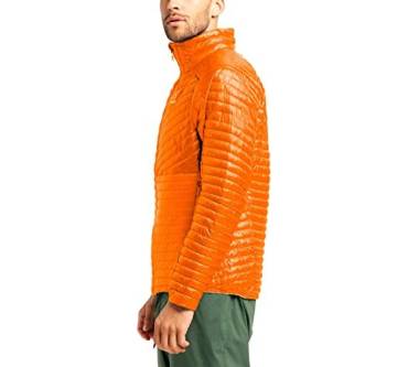 Die synthetische Füllung der L.I.M Mimic von Haglöf gleicht in ihrer Wärmeleistung der von Daunen, meinen Kunden. Auch die Tester von "Alpin" loben die gute Isolierung gegen Kälte. Als Außenmaterial dient robustes Polyamid, das aus recycelten Materialien gewonnen wird. Die Jacke ist mit zwei Seitentaschen ausgestattet, die groß genug sein sollen, um die Hände darin zu wärmen. Der Frontreißverschluss kann bis zum Kinn geschlossen werden. Das Jacket wiegt rund 330 Gramm in Herrengröße M. Damit ist es für eine Isolationsjacke angenehm leicht. Tester bemängeln, dass es keine Packmöglichkeit gibt. Laut Hersteller kann die L.I.M Mimic aber in einer der beiden Seitentaschen verstaut werden.