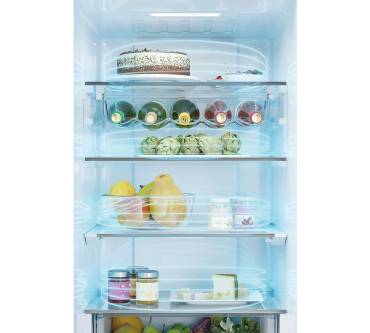 Für diese moderne Kühl-Gefrier-Kombination von Haier müssen Sie etwas tiefer in die Tasche greifen, bekommen aber auch einiges geboten. Unter anderem können Sie im Kühlbereich neben einer Frischeschublade mit hoher Luftfeuchtigkeit eine individuell regelbare Zone nutzen. In dieser stellen Sie je nach gelagertem Lebensmittel die Temperatur von - 3 bis + 5 Grad ein. Das Bedienfeld ist außen angebracht, sodass Sie Kälteverlust beim Öffnen vermeiden. Mit insgesamt 409 Liter Nutzvolumen eignet sich das Modell für den größeren Haushalt und punktet mit 10 kg Gefrierleistung pro Tag. Im Falle einer Störung beträgt die Überbrückungszeit ordentliche 16 Stunden. Durch die Total-No-Frost Technologie bildet sich kein Eis und ein Abtauen entfällt. Die Energiebilanz fällt ebenfalls vorbildlich aus und wird mit der Einstufung in Klasse A (Skala A bis G) belohnt.