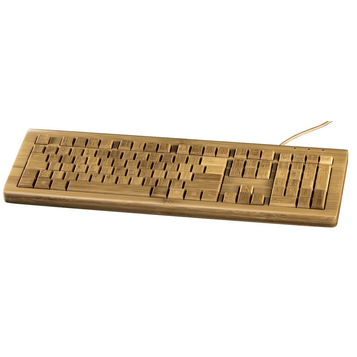 Obwohl man auf den ersten Blick vielleicht meinen könnte, eine Tastatur aus Holz würde lauter klappern als ihre Kollegen aus Plastik, ist dies nur ein vorschneller Reflex ohne ernsthafte Substanz. Denn laut Hersteller Hama ist die für demnächst angekündigte Multimedia-Tastatur aus Bambus (53812) sogar sehr leise und bietet darüber hinaus einen angenehmen Anschlag.