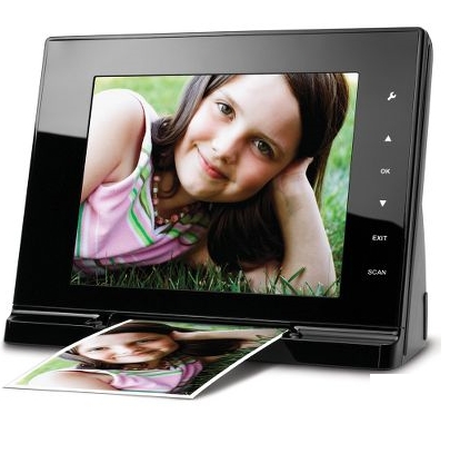 Das Display des Picture Scanning Digital Photo Frame wiederum stellt die Fotos auf einer Bildschirmdiagonalen von 8 Zoll und mit einer hohen – und daher idealen – Auflösung von 800 x 600 Pixeln dar. Weitere Bilder können via Kartenleser in Gestalt von MS-/SD-/xD-/MMC-/CF-Speicherkarten, direkt von der Kamera via PictBridge oder via USB auf den Bilderrahmen überspielt werden. Außerdem spielt das Gerät noch Musikdateien und Videos ab. Der Preis schließlich für das Kombigerät ist ziemlich moderat ausgefallen. Er liegt bei umgerechnet rund 138 Euro (199 Dollar).