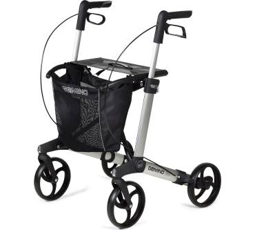 Die größte Variante, also der Gemino 30, kommt mit einer Sitzhöhe von 62 Zentimetern und ist damit besonders gut für Personen eignet, die sich nur schwer von einem Sitz wieder erheben können. Die Gesamtmaße fallen mit 65 x 60 Zentimetern nicht besonders zierlich, aber auch nicht sperrig aus. Die Rollen sind schön groß und laufen auch auf unebenen Untergründen einwandfrei. Trotz der Rollengröße ist der Gehwagen erstaunlich wendig, wie Nutzer bestätigen. Bordsteinkanten und niedrige Stufen lassen sich mit der Ankipphilfe leicht überwinden. Eine Feststellbremse kann das Modell ebenso vorweisen wie eine Klappsperre, die verhindert, dass sich die Gehhilfe ungewollt zusammenklappt. Zur Ausstattung gehören lobenswerterweise Reflektoren, die im Dunkeln Sicherheit bieten, außerdem ein Tragegriff und eine geräumige Netztasche.
