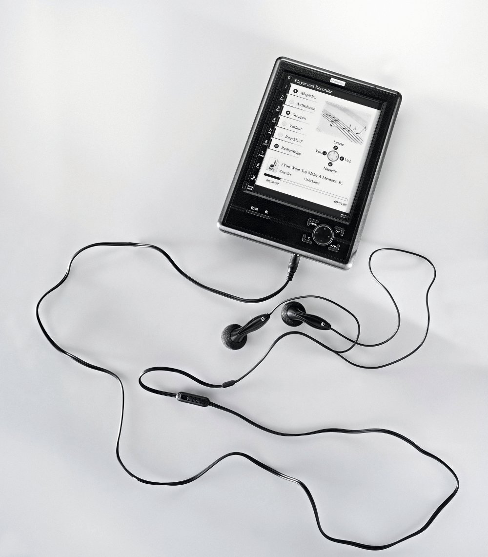 Angezeigt werden eBooks der (bei uns) gängigen Formate Epub, Mobipocket, FB2, PDF, TXT, HTXT, HTML sowie Microsoft-Word-Dokumente, aber auch Bilder (JPG, PNG, GIF). Außerdem kann der N516 Weltbild Edition MP3s abspielen. Ein Kopfhörer wird mitgeliefert. Eine nette Zusatzfunktion ist auch die Möglichkeit, über das integrierte Mikro Musik aufzunehmen.