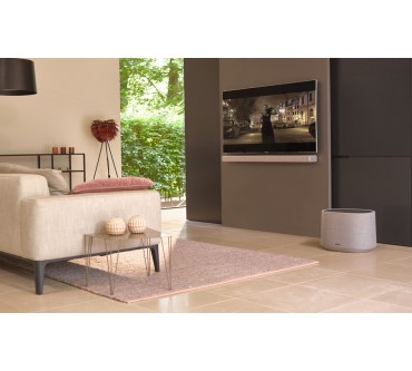 Der Subwoofer aus der Citation-Serie setzt vor allem auf Optik, was durch den Überzug von Kvadrat, einem dänischen Stoffhersteller, deutlich unterstrichen wird. Im Zusammenspiel mit den anderen Lautsprechern der Reihe trägt er seinen Teil zur Wohnungseinrichtung bei, wobei das Design wiederum seinen Teil zum Preis beiträgt. Technisch gibt es absolut nichts zu bemängeln und Sie dürfen mit kräftigem und klarem Bass rechnen. Allein die Abmessungen mit fast 40 Litern Volumen und über 14 Kilogramm Masse sprechen für sich. Dass es keine Anschlüsse gibt, ist natürlich keine Überraschung – noch weniger, da die Signalübertragung komplett drahtlos vonstatten geht, was bei dem begrenzten Frequenz keinerlei Verlust bedeutet.