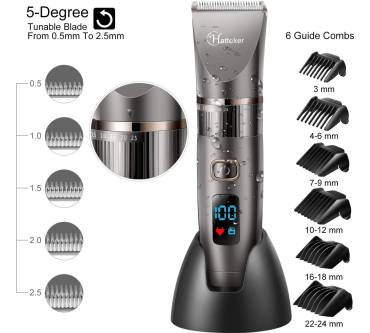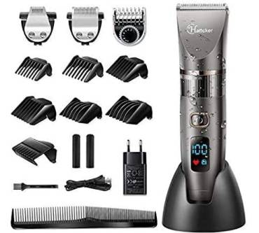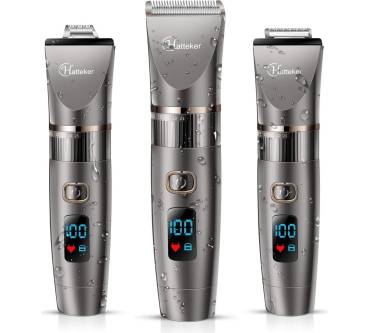 Dieser Haarschneider des wenig bekannten chinesischen Herstellers Hatteker kommt mit viel Zubehör daher. Unter anderem stehen Ihnen 6 Führungskämme zur Verfügung. Feineinstellungen können Sie entweder bei einem Aufsatz am Präzisionsrad (3 bis 8 mm) oder direkt am Griff (0,5 bis 2,5 mm) vornehmen. Laut Rezensenten funktioniert vor allem das großflächige Haareschneiden oder Kürzen von Bärten sehr gut. Die Aufsätze wechseln Sie schnell und unkompliziert. Bei feineren Arbeiten wie dem Ausrasieren von Mustern oder Konturen benötigen Sie etwas Zeit und das Ergebnis wird nicht ganz sauber. Ein praktisches Extra sind die mitgelieferten 2 Batterien: Damit haben Sie immer eine in Reserve, sollte der Ladestand niedrig sein. Zur Reinigung spülen Sie Scherkopf und Aufsätze einfach unter kaltem Wasser ab, der Hatteker ist laut Hersteller zu 100 Prozent wasserdicht.