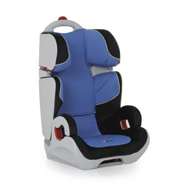 Kopfteil und Seitenwangen wirken ordentlich gepolstert, die Aufprallkräfte im Falle eines Frontal- oder Seitencrahs sollten daher recht gut absorbiert werden. Vorbildlich zeigt er sich bei der Gurtführung: Diese ist beim Diagonalgurt geschlossen, der Gurt bleibt daher immer an seinem Platz und kann nicht rutschen. Mit seinen gerademal sieben Kilogramm ist er für einen ausgewachsene Sitz recht leicht, auch das prädestiniert ihn zum Kindersitz, der häufig zwischen Fahrzeugen oder Sitzplätzen gewechselt werden kann. Umständliches Einfädeln des Gurtsystems scheint ebenfalls nicht zu erwarten sein.