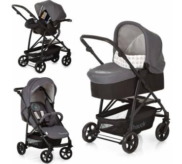 Mit dem Hauck Rapid 4X Plus Trio Set sind Sie ab der Geburt Ihres Schützlings bis hin ins Kleinkindalter gut gerüstet. Im Lieferumfang enthalten sind neben dem Sporteinhang nämlich auch eine Babywanne und die von Stiftung Warentest geprüfte Babyschale Comfort Fix. Letztere schwächelt zwar in der Handhabe, kann aber bezüglich Sicherheit und Ergonomie mit guten Noten punkten.