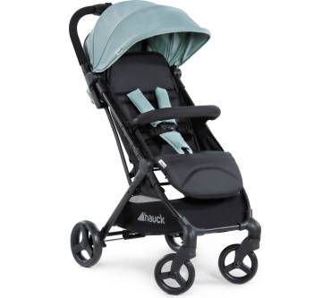 Weil die Lehne sich fast bis zur Waagrechten absenken lässt, hat Hauck seinen Sunny nicht nur als Sitzbuggy eingestuft, sondern als etwas Größeres: einen von Geburt an verwendbaren Alltagsbegleiter bis 25 Kilo oder etwa vier Jahre. Bei näherer Betrachtung erweist sich der mit 6,6 Kilo sehr leichte und vom Charakter platzsparende Buggy als fein designter Shopping- und Reisebegleiter. Bemerkenswert ist die automatische Einhand-Faltung – eine technische Augenweide, wie das Video zeigt. Das Gestell faltet sich auf Knopfdruck wie von allein auf ein handliches, kofferraumtaugliches Paket zusammen. Offroad-Werte hat er nicht, das belegen die kleinen Schwenkräder vorn; die federnden Luftkammerräder sind mit dem Kopfsteinpflaster zu erklären, das oftmals im Stadtleben zu bewältigen ist. Applaus gibt es für die Transportlösung mit Baby-Autositz. Wenn Sie etwa schon eine iPro Baby oder Comfort Fix haben, können Sie ihn als Untersatz für kurze Wege vom und zum Auto verwenden. Schade nur, dass die passenden Sunny-Adapter extra kosten (ca. 25 Euro im Online-Handel).