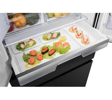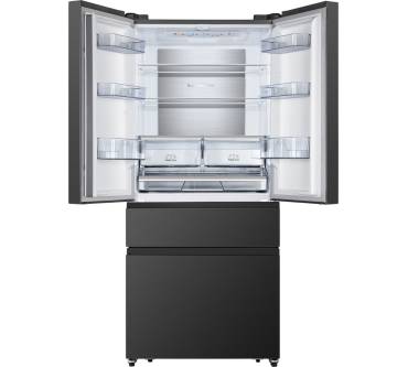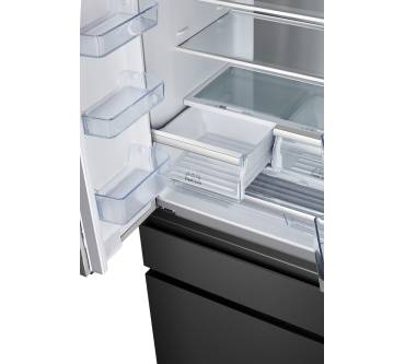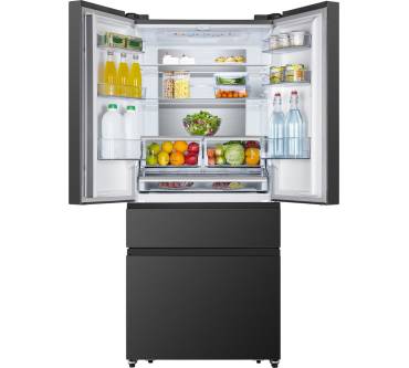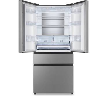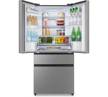 Diese Kühl-Gefrierkombination von Hisense fügt sich elegant in Designerküchen und bietet ordentlich Platz für Ihre Vorräte. Dank flexibel nutzbarem Mittelfach haben Sie viel Spielraum: Dieses können Sie wahlweise als Gefrier- oder Kühlbereich nutzen und so das aktuell nötige Volumen im entsprechenden Teil erhöhen. Für frische Lebensmittel stehen Ihnen Supermodi zur Verfügung, welche die Nährstoffen erhalten. Die Umluftkühlung (getrennte Kreisläufe) verteilt die Temperatur gleichmäßig, sodass auch der letzte Winkel erreicht wird. Diesen können Sie dank LED-Innenbeleuchtung auch im Dunkeln gut sichten, wenn beispielsweise nachts Hunger aufkommt. Wie derzeit leider bei den meisten großen Kühlgeräten ist der Energieverbrauch erhöht, auch der Anschaffungspreis ist happig. Die bereits zahlreich vorhandenen Nutzer sind dennoch zu über 90 Prozent sehr zufrieden und empfehlen das Produkt weiter.