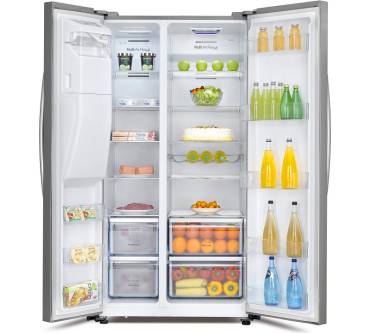 Im Vergleich zu anderen Side-by-Side-Kühlschränken ist dieses Gerät nur mäßig stromsparend. Gemessen am Nutzvolumen liegt er mit einem Jahresverbrauch von 345 kWh im Mittelfeld. Besonders sparsam ist zum Beispiel der Samsung RS54HDRPBSR mit, der nur 236 kWh im Jahr verbraucht, jedoch 10 l mehr bietet.