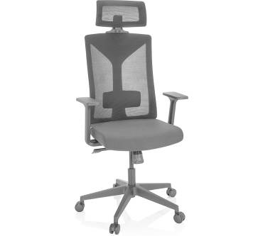 Der Hersteller hjh Office spendiert dem Drehstuhlmodell Kodiak eine solide Ausstattung mit Chefsessel-Effekt. Die höhenverstellbare Kopfstütze bietet zusätzlichen Halt und lässt sich so einstellen, dass der Stuhl sich für „Besitzer“ zwischen 1,50 Meter und 1,95 Meter Körpergröße eignet. Maximal belastbar ist er bis 120 Kilogramm. Die weitere ergonomische Ausstattung kann sich ebenfalls sehen lassen. So unterstützt die Synchronmechanik Ihre Vor- und Rückwärtsneigungen auf dem Stuhl, fördert dabei die Durchblutung und verhindert Nacken- und Rückenbeschwerden. Der Stuhl eignet sich somit auch für lange Nutzungszeiten. Eine in der Netzrückenlehne integrierte Lordosenstütze fördert eine aufrechte Haltung. Sie ist in sechs Stufen höhenverstellbar, sodass Sie sie sehr exakt an Ihre Größe anpassen. Auf eine solide Qualität deutet schließlich das Eigengewicht des Möbels von knapp 16 Kilogramm hin. Angesichts der insgesamt überzeugenden Ausstattung ist der Preis klein: Sie zahlen rund 260 Euro. Ähnliche Eigenschaften plus dreifach verstellbare Armlehnen bietet der Drehstuhl hjh Office Arceo.