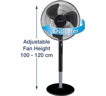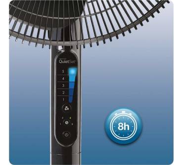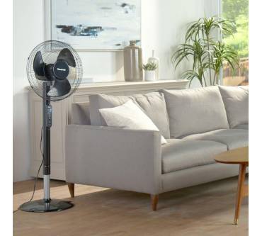 „Macht angenehmen Wind, einer der leisesten im Test. Fünf Lüfterstufen. Nur per Hand ist die Schwenkautomatik zuzuschalten und der Kippwinkel einstellbar. Auf der Rückseite parkt die Fernbedienung ...“