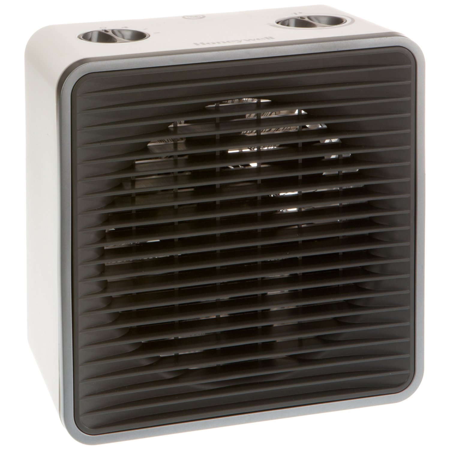 Der Heizlüfter fällt mit 24 mal 24 mal 14 Zentimetern sehr kompakt aus und bietet sich damit als Kandidat für sehr kleine Räume an. Eine Wandmontage ist allerdings leider nicht möglich. Wie bei vielen Geräten seiner Klasse kommt der Heißluftstrom nicht gerade mit großer Geschwindigkeit daher. Auf längere Entfernungen, etwa ab zwei Metern, ist er also kaum mehr zu spüren, was wiederum auch bedeutet, dass sich der Honeywell nur schwer dazu eignet, die kalte Luft in einem etwas größeren Raum effektiv umzuwälzen und auf eine wohlige Temperatur zu bringen. Dies gelingt ihm nur, wenn er in kleinen Räumen eingesetzt wird oder der Luftstrom gezielt ausgerichtet wird, etwa auf die Dusche. Speziell im letzteren Fall lohnt sich das Gerät, denn der Luftstrom des Honeywell soll tatsächlich sehr heiß ausfallen.