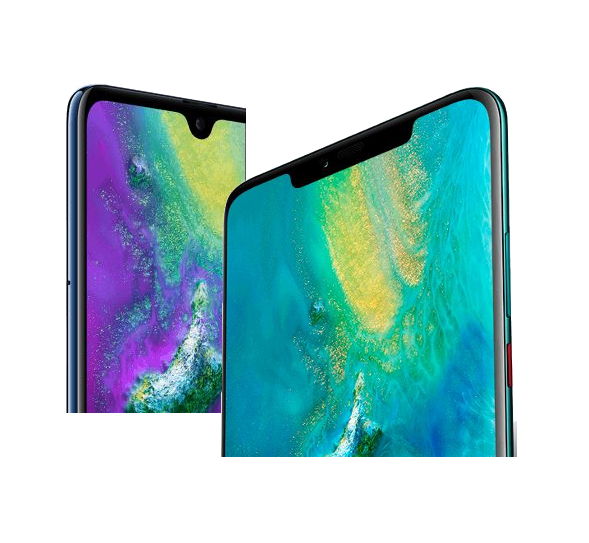 Links das dezentere Mate 20, rechts das Mate 20 Pro mit der sehr dominanten Notch (Bildquelle: huawei.com)