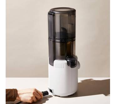Der BPA-freie Slow Juicer punktet mit schlanker Bauweise und eignet sich ideal für kleine Küchen und Singlehaushalte. Mit seinen kompakten Abmessungen und dem geringen Eigengewicht können Sie ihn auch gut auf Reisen mitnehmen. Er lässt sich Nutzern zufolge einfach zusammenbauen und die Bedienung erfolgt selbsterklärend über ein intuitives Bedienrad. Sein Highlight ist die neue Multi-Schnecke, welche eine Kombination aus Presse und Mehrfachsieb zugleich ist. Zutaten werden damit automatisch und in kürzester Zeit zerkleinert und entsaftet. Sie bewältigt mühelos Obst und Gemüse für Ihre Säfte und Smoothies, sowie gefrorene Früchte zur Eiscreme-Herstellung oder auch Nüsse für Nussmilch. Der selbstfütternde Behälter besitzt eine leichtgängige Deckelöffnung zum Nachfüllen von Zutaten. Dabei stoppt der Entsafter den Betrieb aus Sicherheitsgründen automatisch und setzt ihn nach dem Schließen des Deckels fort. Rezensenten berichten von gleichmäßigen und zügigen Saftergebnissen. Einige kritisieren, dass der Fruchtfleischanteil im Saft etwas höher ausfällt. Das Modell überzeugt im Vergleich zu herkömmlichen Entsaftern mit einer mühelosen Reinigung von nur drei Teilen. Das Kabel ist abnehmbar und lässt sich nach dem Gebrauch platzsparend verstauen.
