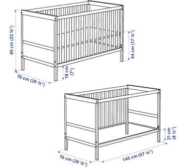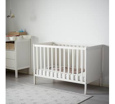 Wer beim Kinderbettkauf nicht allzu tief in die Tasche greifen möchte, findet hier vielleicht einen passenden Kandidaten: Das Babybett Sundvik von Ikea kostet nur etwa 120 Euro und hält trotzdem mit den teureren Konkurrenten gut mit. Der Materialmix aus MDF und Buche bietet genügend Stabilität, um in puncto Sicherheit vollkommen überzeugen zu können. Auch Verarbeitungsqualität und Handhabung erhalten sehr gute Bewertungen. Darüber hinaus ist das Bett mit etwa 18 Kilogramm erfreulich leicht. Einzig die Aufbauanleitung erhält Kritik. Laut Tests ist die Schrift nur schwer erkennbar.