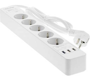 Die InLine Steckdosenleiste, 5-fach Schutzkontakt, mit Quick Charge USB dient zum Anschluss von bis zu drei elektrischen Verbrauchern. Darüber hinaus ist ein USB-Schnellladenetzteil für kompatible Endgeräte integriert. Herkömmliche USB-Endgeräte können ebenfalls über die USB-Ports aufgeladen werden. Verwenden Sie die Steckdosenleiste ausschließlich in trockenen, geschlossenen Räumen und setzen Sie sie keiner direkten Sonneneinstrahlung, extremen Temperaturen oder Feuchtigkeit aus.Integrierte KindersicherungÜbersspannungsschutzFür Wandmontage geeignetLED-AnzeigenEingangsspannung: AC 220-250VStrom: 16AStandby Verbrauch: 0,5W (Schalter an)Anschlussleistung: max. 4.000WUSB-Gesamtleistung: (3,6V-12V / 5,0V): 24W max.Ausgang 1: Qualcomm (QC 3.0) 3,6-6,5V/3A , 6,5-9V/2A, 9-12V/1,5A max.Ausgang 2: 5,0V/2,4A max.Ausgang 3: 5,0V/1A max.Überspannungsschutz: Testklasse 3, Uoc=6kV, Up=1,3kVAnzahl der Steckdosen: 5x Schutzkontakt-Steckdose, 3x USBAusrichtung Anschlüsse: 45°Kabel: H05VV-F3G1,5mm²Länge des Verbindungskabels: ca. 1,5mAbmessungen: 360x55x44mm (LxBxH)Gewicht: 665gFarbe: Klavierlack weißMaterial:Kunststoff Kabellänge:1,5 mEin-/Ausschalter:JaAC-Steckertypen:Typ FKerngröße:1,5 mm²Produktfarbe:WeißMaterial:Kunststoff:YesAnzahl der AC-Ausgänge:5 AC-AusgängeAnzahl der USB-Anschlüsse:3Spannung:220 - 250 VStromverbrauch (Standby):0,5 WBreite:55 mmTiefe:360 mmHöhe:45 mmGewicht:688 gVerpackungsbreite:145 mmVerpackungstiefe:455 mmVerpackungshöhe:50 mmVerpackungsvolumen:2400 cm³Paketgewicht:865 g Allgemeine InformationenHersteller:Intos Electronic AGHersteller-Artikelnummer:16491THersteller-Webseite:Marke:InLineModell:16491TProduktbezeichnung:16491T SteckdosenleisteProdukttyp:SteckdosenleisteTechnische InformationenAnschlüsse:3 x USBKabellänge:1,50 mStromversorgungEingangsspannung:230 V ACMaximale Eingangsstromstärke:16 ANetzschalter:JaNennleistung:4 kWAbmessungen / Gewicht / FarbeProduktfarbe:WeißProduktmaterial:PlastikFormfaktor:WandmontierbarHöhe:44 mmBreite:55 mmTiefe:360 mmGewicht:665 gVerschiedenesen:GSUmweltfreundlich:Ja Kurzinfo: INLINE - Verlängerungsschnur - AC 220-250 V - 4000 Watt - Ausgangsanschlüsse: 5 (3 x USB Typ A, 5 x power Type F) - 1.5 m - Deutschland - weiß Gruppe USV & Stromversorgungsgeräte Hersteller InLine Hersteller Art. Nr. 16491T Modell InLine EAN/UPC 4043718271375 Produktbeschreibung: INLINE - Verlängerungsschnur - 4000 Watt Gerätetyp Verlängerungsschnur - extern Kabellänge 1.5 m Gewicht 665 g Lokalisierung Deutschland Eingangsspannung AC 220-250 V Leistungskapazität 4000 Watt Ausgabeanschlussstellen 5 x Leistung Typ F 1 x 4-polig USB Typ A - 12 V 1 x 4-polig USB Typ A - 5 V - 2.4 A 1 x 4-polig USB Typ A - 5 V - 1 A Abmessungen (Breite x Tiefe x Höhe) 36 cm x 5.5 cm x 4.4 cm Ausführliche Details Allgemein Gerätetyp Verlängerungsschnur - extern Kabellänge 1.5 m Farbe Weiß Lokalisierung Deutschland Stromversorgungsgerät Eingangsspannung AC 220-250 V Angaben zu Ausgangsleistungsanschlüssen 5 x Leistung Typ F 1 x 4-polig USB Typ A - 12 V 1 x 4-polig USB Typ A - 5 V - 2.4 A 1 x 4-polig USB Typ A - 5 V - 1 A Elektrischer Strom max. 16 A Leistungskapazität 4000 Watt Verschiedenes Enthaltene Kabel Stromkabel 1.5 m Besonderheiten Geeignet für Wandmontage, Ein-/Ausschalter, Berührungsschutz, Überspannungsschutz, Überlastungsschutz, Qualcomm Quick Charge 3.0 Kennzeichnung GS Abmessungen und Gewicht Breite 36 cm Tiefe 5.5 cm Höhe 4.4 cm Gewicht 665 g...