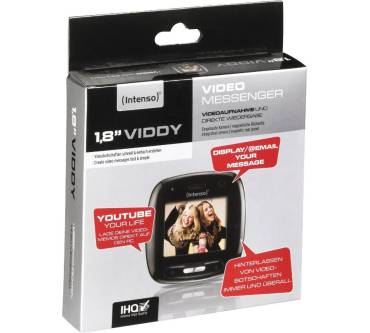 Der Videomessenger Intenso 1,8" Viddy ist nicht viel größer als eine Streichholzschachtel, wobei das 1,8 Zoll TFT-Display fast die ganze Vorderseite des Gerätes einnimmt. Eine LED-Anzeige signalisiert dem Benutzer dabei per Blinken den Status des Gerätes. Auf Wunsch können die aufgenommenen Videobotschaften laut Intenso auch per E-Mail verschickt oder auf YouTube hochgeladen werden. Dafür muss der Viddy jedoch an einen Computer mit Internet-Verbindung angeschlossen sein. Das dazu notwendige Mini-USB-Kabel ist jedoch bereits im Lieferumfang enthalten.