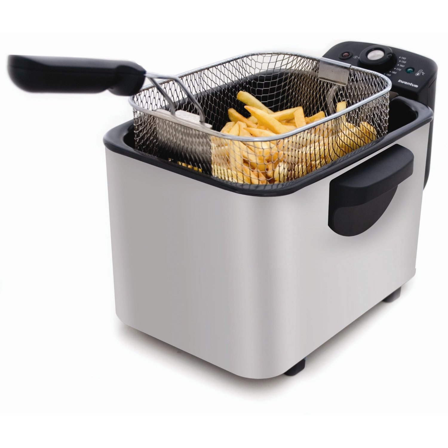 Viele Hersteller preisen ihre Friteusen mit Füllmengen für das Frittiergut von bis zu 700, 800 Gramm ab, obwohl die Geräten lediglich für eine Frittüre von maximal 2 oder etwas mehr Litern ausgelegt sind. In der Praxis hat dies meist zur Folge, dass sich die Pommes im Frittierkorb aneinander quetschen und nicht frei im Öl schwimmen können – nicht alle Pommes werden daher gleich kross und knusprig. Bei der Inventum kann dies nicht so leicht passieren, das sie bis zu 3 Litern Frittüre aufnehmen und daher auch etwas größere Mengen an Frittiergut noch verarbeiten kann, ohne dass mit einem massiven Qualitätsverlust gerechnet werden muss. Dafür muss man sich auf der anderen Seite mit ein bisschen Geduld wappnen. Denn für drei Liter Frittüre ist eine Leistungsaufnahme von maximal 2.000 Watt etwas wenig, auf eine längere Aufheizphase zum Beispiel sollte man sich einstellen. Wenn dafür leckere Pommes und Co gelingen, nimmt man dies allerdings sicherlich gerne in Kauf.