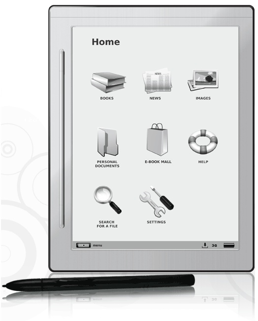 Außergewöhnlich am DR800SG ist auch die Display-Größe, die mit 8,1 Zoll die meisten Konkurrenten überragt. Der Reader eignet sich daher auch sehr gut für Zeitschriften, weswegen es kein Wunder nimmt, dass man in den USA auch 1.100 Zeitungen über das Gerät abonnieren kann – ein zukunftsträchtiger Markt. Außerdem unterstützt er neben dem Newspaper-Format auch die Formate ePub, PDF, Fictionwise, eReader und TXT. Der interne Speicher wird über eine Kartenslot erweitert. Im Lieferumfang enthalten ist eine 2 GB große SD-Karte.