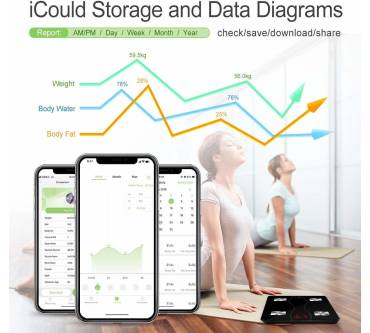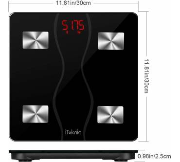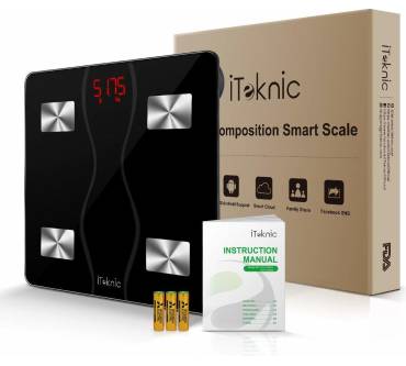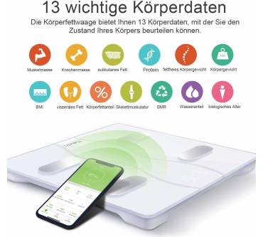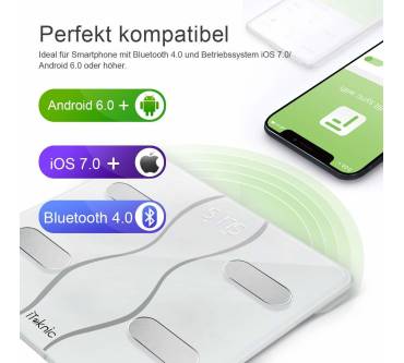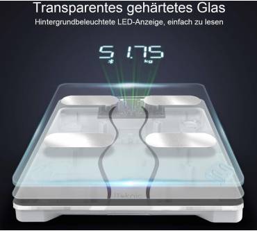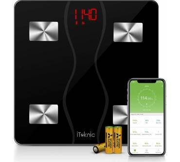 Elf Werte bestimmen Sie mit der Körperfettwaage von iTeknic und überwachen so nicht nur Ihr Gewicht, sondern beispielsweise auch den BMI oder gar Ihr metabolisches Alter. Dazu bringt sie eine App mit, mit der beliebig viele Nutzer ihre Daten eingeben und verwalten können. Ihre wichtigste Funktion, die Gewichtsmessung, erfüllt die Waage gut. Sie ist bis 180 Kilogramm belastbar, passt mit ihrem Design in viele moderne Bäder und hat eine schön große Trittfläche. Von den Kunden bekommt das Modell für dieses Rundum-Paket fast nur sehr gute Noten. Selbst die App, bei vielen Geräten ein Schwachpunkt, kommt gut an. Nur dass genau diese App eine ziemliche Datenkrake ist, das ist schon ärgerlich.